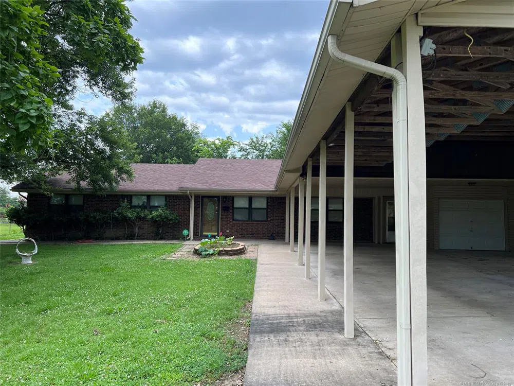 On the Edge of Town! Ranch style home with plenty of room looking out to ranch land. Large living room, dining off the kitchen and a covered back porch ideal for coffee in the mornings! This 3 bedroom, 2 bath home also has a family room equipped with a pool table! There is a covered parking area that will house an RV for traveling. Carport area can be used for barbecue grilling and lots of family fun. There is a garden spot in the back yard and 2 storage buildings. The family room is not included in the square footage and it is heated and cooled. The vacant lot to the west may be purchased separately.